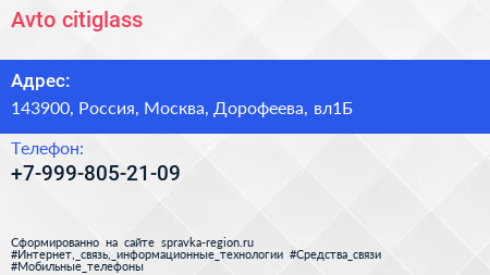 Avto-citiglass по адресу 143900, Россия, Москва, Дорофеева, вл1Б в дальнейшем Организация, размещена в следующих категориях: