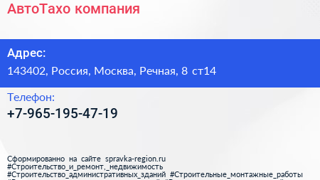 АвтоТахо, компания по адресу 143402, Россия, Москва, Речная, 8 ст14 в дальнейшем Организация, размещена в следующих категориях: