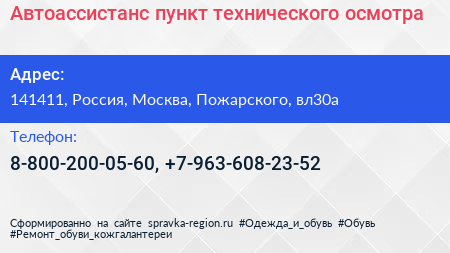 Автоассистанс, пункт технического осмотра по адресу 141411, Россия, Москва, Пожарского, вл30а в дальнейшем Организация, размещена в следующих категориях: