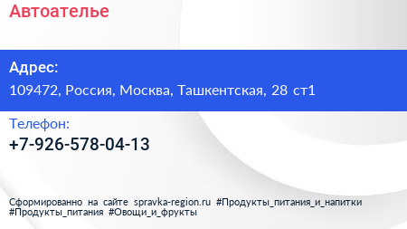 Автоателье по адресу 109472, Россия, Москва, Ташкентская, 28 ст1 в дальнейшем Организация, размещена в следующих категориях: