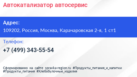 Автокатализатор, автосервис по адресу 109202, Россия, Москва, Карачаровская 2-я, 1 ст1 в дальнейшем Организация, размещена в следующих категориях: