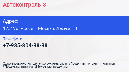 Автоконтроль-3 по адресу 125196, Россия, Москва, Лесная, 3 в дальнейшем Организация, размещена в следующих категориях: