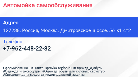 Автомойка самообслуживания по адресу 127238, Россия, Москва, Дмитровское шоссе, 56 к1 ст2 в дальнейшем Организация, размещена в следующих категориях: