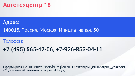 Автотехцентр 18 по адресу 140015, Россия, Москва, Инициативная, 50 в дальнейшем Организация, размещена в следующих категориях: