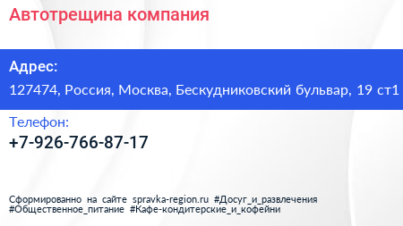 Автотрещина, компания по адресу 127474, Россия, Москва, Бескудниковский бульвар, 19 ст1 в дальнейшем Организация, размещена в следующих категориях: