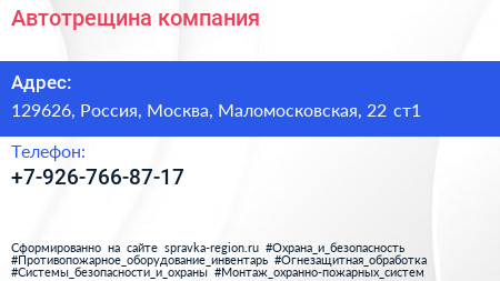 Автотрещина, компания по адресу 129626, Россия, Москва, Маломосковская, 22 ст1 в дальнейшем Организация, размещена в следующих категориях: