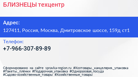 БЛИЗНЕЦЫ, техцентр по адресу 127411, Россия, Москва, Дмитровское шоссе, 159д ст1 в дальнейшем Организация, размещена в следующих категориях: