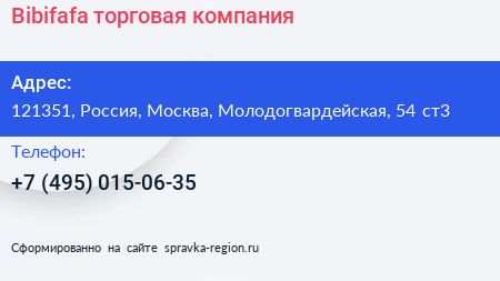 Bibifafa, торговая компания по адресу 121351, Россия, Москва, Молодогвардейская, 54 ст3 в дальнейшем Организация, размещена в следующих категориях: