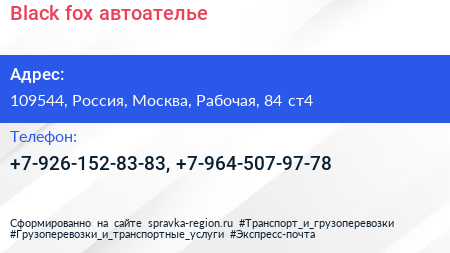 Black fox, автоателье по адресу 109544, Россия, Москва, Рабочая, 84 ст4 в дальнейшем Организация, размещена в следующих категориях: