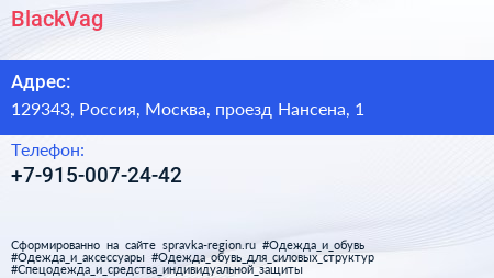 BlackVag по адресу 129343, Россия, Москва, проезд Нансена, 1 в дальнейшем Организация, размещена в следующих категориях: