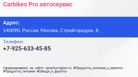 Carbikes Pro, автосервис по адресу 140090, Россия, Москва, Стройгородок, 8 в дальнейшем Организация, размещена в следующих категориях: