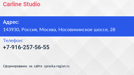 Carline Studio по адресу 143930, Россия, Москва, Носовихинское шоссе, 28 в дальнейшем Организация, размещена в следующих категориях: