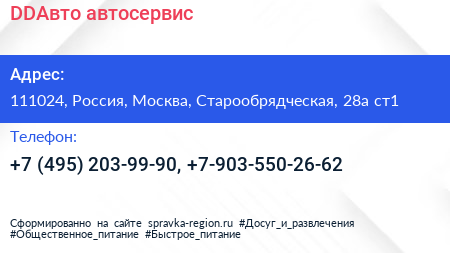 DDАвто, автосервис по адресу 111024, Россия, Москва, Старообрядческая, 28а ст1 в дальнейшем Организация, размещена в следующих категориях: