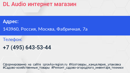 DL Audio, интернет-магазин по адресу 143960, Россия, Москва, Фабричная, 7а в дальнейшем Организация, размещена в следующих категориях: