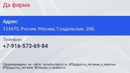 Да!, фирма по адресу 111673, Россия, Москва, Суздальская, 26Б в дальнейшем Организация, размещена в следующих категориях: