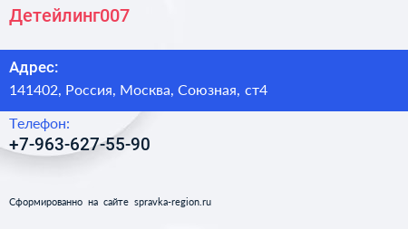 Детейлинг007 по адресу 141402, Россия, Москва, Союзная, ст4 в дальнейшем Организация, размещена в следующих категориях: