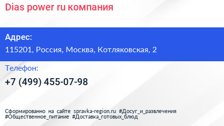 Dias-power.ru, компания по адресу 115201, Россия, Москва, Котляковская, 2 в дальнейшем Организация, размещена в следующих категориях: