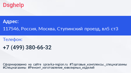 Dsghelp по адресу 117546, Россия, Москва, Ступинский проезд, вл5 ст3 в дальнейшем Организация, размещена в следующих категориях: