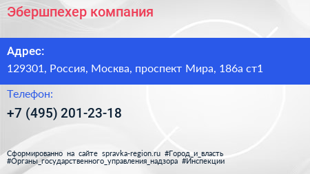Эбершпехер, компания по адресу 129301, Россия, Москва, проспект Мира, 186а ст1 в дальнейшем Организация, размещена в следующих категориях: