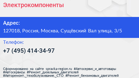 Электрокомпоненты по адресу 127018, Россия, Москва, Сущёвский Вал улица, 3/5 в дальнейшем Организация, размещена в следующих категориях: