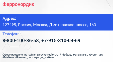 Ферронордик по адресу 127495, Россия, Москва, Дмитровское шоссе, 163 в дальнейшем Организация, размещена в следующих категориях: