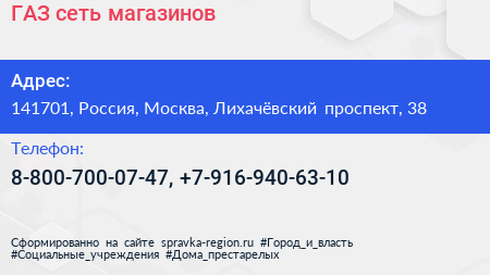 ГАЗ, сеть магазинов по адресу 141701, Россия, Москва, Лихачёвский проспект, 38 в дальнейшем Организация, размещена в следующих категориях: