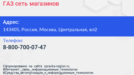 ГАЗ, сеть магазинов по адресу 143405, Россия, Москва, Центральная, вл2 в дальнейшем Организация, размещена в следующих категориях: