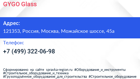 GYGO-Glass по адресу 121353, Россия, Москва, Можайское шоссе, 45а в дальнейшем Организация, размещена в следующих категориях: