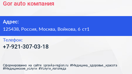 Gor-auto, компания по адресу 125438, Россия, Москва, Войкова, 6 ст1 в дальнейшем Организация, размещена в следующих категориях: