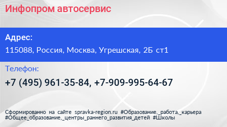 Инфопром, автосервис по адресу 115088, Россия, Москва, Угрешская, 2Б ст1 в дальнейшем Организация, размещена в следующих категориях: