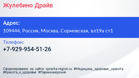 Жулебино-Драйв по адресу 109444, Россия, Москва, Сормовская, вл19а ст1 в дальнейшем Организация, размещена в следующих категориях: