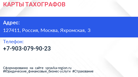 КАРТЫ ТАХОГРАФОВ по адресу 127411, Россия, Москва, Яхромская, 3 в дальнейшем Организация, размещена в следующих категориях: