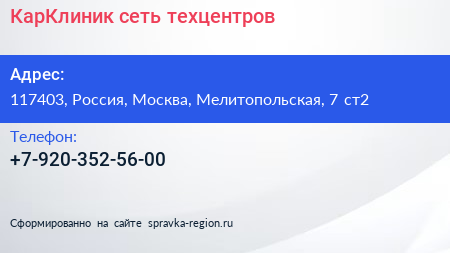КарКлиник, сеть техцентров по адресу 117403, Россия, Москва, Мелитопольская, 7 ст2 в дальнейшем Организация, размещена в следующих категориях: