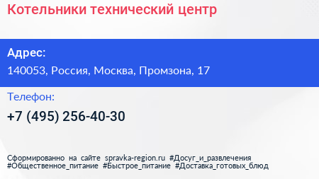 Котельники, технический центр по адресу 140053, Россия, Москва, Промзона, 17 в дальнейшем Организация, размещена в следующих категориях: