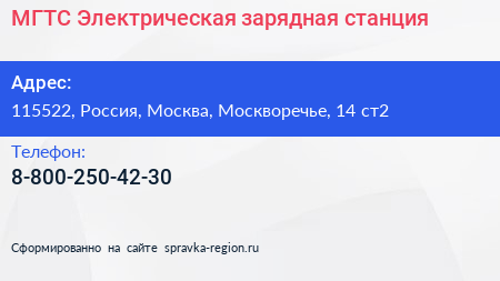 МГТС, Электрическая зарядная станция по адресу 115522, Россия, Москва, Москворечье, 14 ст2 в дальнейшем Организация, размещена в следующих категориях:
