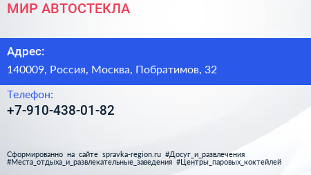 МИР АВТОСТЕКЛА по адресу 140009, Россия, Москва, Побратимов, 32 в дальнейшем Организация, размещена в следующих категориях: