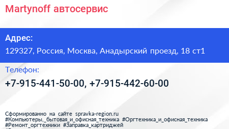 Martynoff, автосервис по адресу 129327, Россия, Москва, Анадырский проезд, 18 ст1 в дальнейшем Организация, размещена в следующих категориях: