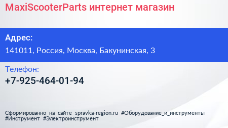 MaxiScooterParts, интернет-магазин по адресу 141011, Россия, Москва, Бакунинская, 3 в дальнейшем Организация, размещена в следующих категориях: