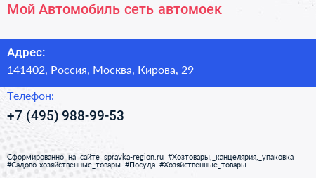 Мой Автомобиль, сеть автомоек по адресу 141402, Россия, Москва, Кирова, 29 в дальнейшем Организация, размещена в следующих категориях: