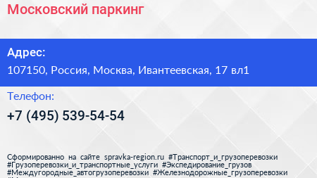 Московский паркинг по адресу 107150, Россия, Москва, Ивантеевская, 17 вл1 в дальнейшем Организация, размещена в следующих категориях: