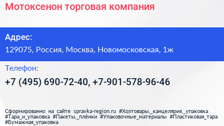 Мотоксенон, торговая компания по адресу 129075, Россия, Москва, Новомосковская, 1ж в дальнейшем Организация, размещена в следующих категориях: