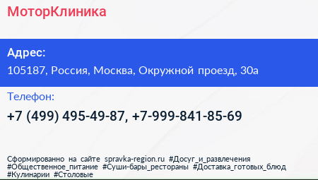 МоторКлиника по адресу 105187, Россия, Москва, Окружной проезд, 30а в дальнейшем Организация, размещена в следующих категориях:
