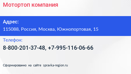 Мотортоп, компания по адресу 115088, Россия, Москва, Южнопортовая, 15 в дальнейшем Организация, размещена в следующих категориях: