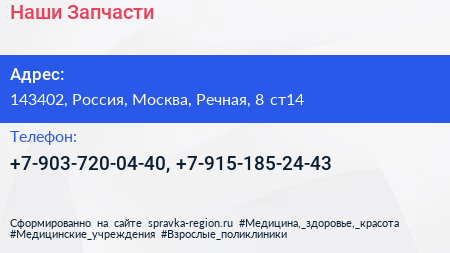 Наши Запчасти по адресу 143402, Россия, Москва, Речная, 8 ст14 в дальнейшем Организация, размещена в следующих категориях: