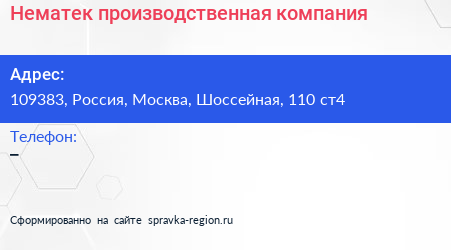 Нематек, производственная компания по адресу 109383, Россия, Москва, Шоссейная, 110 ст4 в дальнейшем Организация, размещена в следующих категориях: