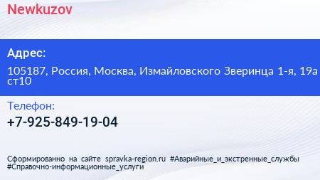 Newkuzov по адресу 105187, Россия, Москва, Измайловского Зверинца 1-я, 19а ст10 в дальнейшем Организация, размещена в следующих категориях: