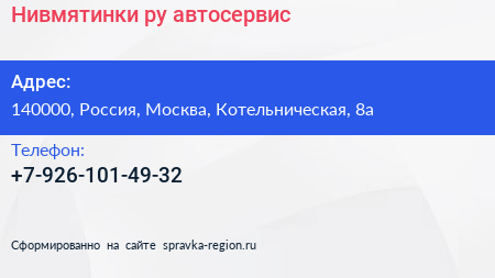 Нивмятинки.ру, автосервис по адресу 140000, Россия, Москва, Котельническая, 8а в дальнейшем Организация, размещена в следующих категориях: