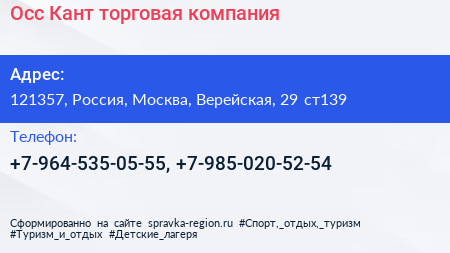 Осс-Кант, торговая компания по адресу 121357, Россия, Москва, Верейская, 29 ст139 в дальнейшем Организация, размещена в следующих категориях: