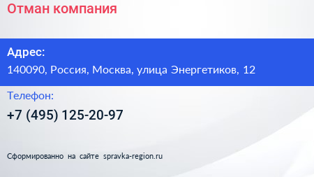 Отман, компания по адресу 140090, Россия, Москва, улица Энергетиков, 12 в дальнейшем Организация, размещена в следующих категориях: