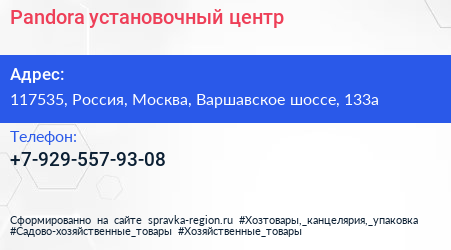 Pandora, установочный центр по адресу 117535, Россия, Москва, Варшавское шоссе, 133а в дальнейшем Организация, размещена в следующих категориях: